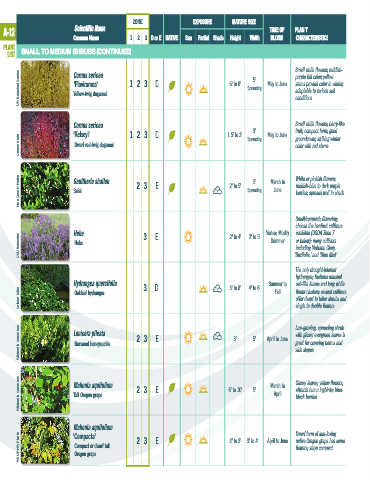 A-12 Scientific Name 1 2 3 D or E NATIVE Sun Partial Shade Height Width TIME OF PLANT