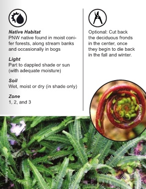PNW native found in moist coni- the deciduous fronds
