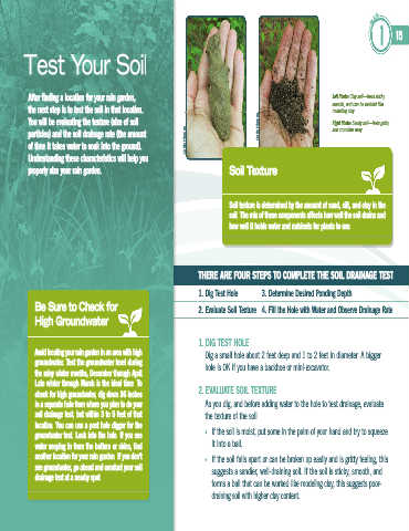 check for high groundwater, dig down 36 inches 2. EVALUATE SOIL TEXTURE