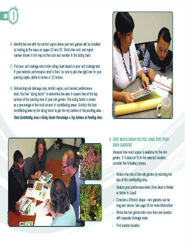surface of the ponding area of your rain garden. The sizing factor is shown