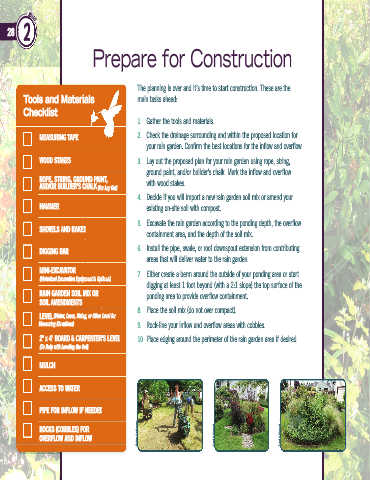 your rain garden. Confirm the best locations for the inflow and overflow.