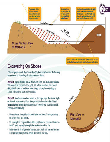 Places stakes at the Tie a string from Use the soil excavated from the uphill 2 37