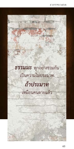 ธรรมนุสรณ์ พระครูบาเจ้าบุญชุ่ม ญาณสํวโร ๕ มกราคม ๒๕๖๒ ธรรมมะ ทุกอย่ำงรวมกัน เป็นควำมไม่ประมำท ถ้าประมาท เหมือนคนตำยแล้ว พระครูบำเจ้ำบุญชุ่ม ญำณส�วโร อรัญวำสีภิกขุ 62 63