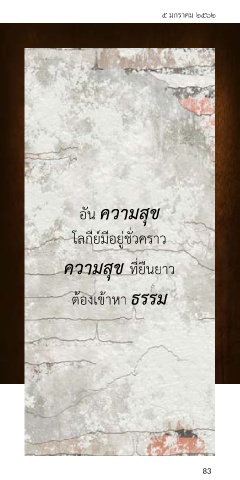 ธรรมนุสรณ์ พระครูบาเจ้าบุญชุ่ม ญาณสํวโร ๕ มกราคม ๒๕๖๒ อัน ความสุข โลกีย์มีอยู่ชั่วครำว ความสุข ที่ยืนยำว ต้องเข้ำหำ ธรรม พระครูบำเจ้ำบุญชุ่ม ญำณส�วโร อรัญวำสีภิกขุ 82 83