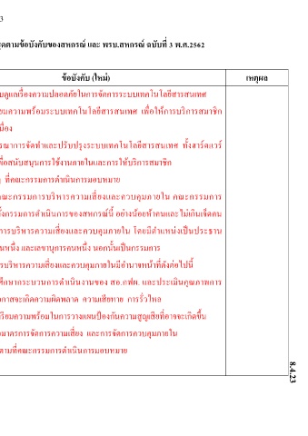 ข้อบังคับ (ใหม่) (12) กํากับดูแลเรื่องความปลอดภัยในการจัดการระบบเทคโนโลยีสารสนเทศ (13) เตรียมความพร้อมระบบเทคโนโลยีสารสนเทศ เพื่อให้การบริการสมาชิก (14) พิจารณาการจัดทําและปรับปรุงระบบเทคโนโลยีสารสนเทศ ทั้งฮาร์ดแวร์ และซอฟต์แวร์เพื่อสนับสนุนการใช้งานภายในและการให้บริการสมาชิก ข้อ 81. คณะกรรมการบริหารความเสี่ยงและควบคุมภายใน คณะกรรมการ ดําเนินการอาจตั้งกรรมการดําเนินการของสหกรณ์นี้ อย่างน้อยห้าคนและไม่เ