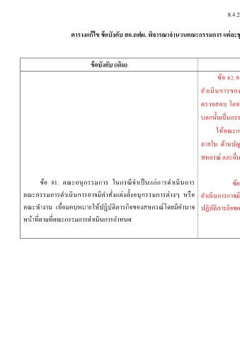 8.4.24 ตารางแก้ไข ข้อบังคับ สอ.กฟผ. พิจารณาจํานวนคณะกรรมการ แต่ละชุดตามข้อบังคับของสหกรณ์ และ พรบ.สหกรณ์ ฉบับที่ 3 พ.ศ.2562 เหตุผล ข้อบังคับ (ใหม่) ข้อ 82.คณะกรรมการตรวจสอบ คณะกรรมการดําเนินการอาจตั้งกรรมการ นคณะกรรมการ ดําเนินการของสหกรณ์นี้อย่างน้อย สามคนและไม่เกินห้าคน เป็ ตรวจสอบ โดยมีตําแหน่งเป็นประธานคณะกรรมการคนหนึ่ง และเลขานุการคนหนึ่ง นอกนั้นเป็นกรรมการ ให้คณะกรรมการตรวจสอบมีอํานาจหน้าที่ในการกําหนดนโยบายการควบคุม ภายใน