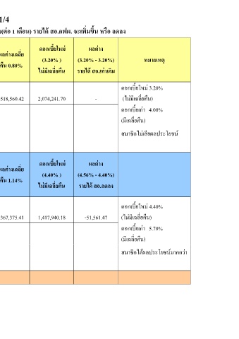 ตารางเปรียบเทียบดอกเบี้ยเงินกู้พิเศษเพื่อที่อยู่อาศัย(ต่อ 1 เดือน) รายได้ สอ.กฟผ. จะเพิ่มขึ้น หรือ ลดลง