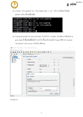 16. Change autostart for ServiceGroup “COOPSG” to false : หากต้องการป้องกันการ