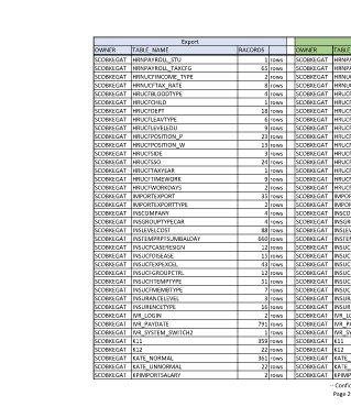 OWNER TABLE_NAME RACORDS OWNER TABLE_NAME RACORDS OWNER TABLE_NAME RACORDS