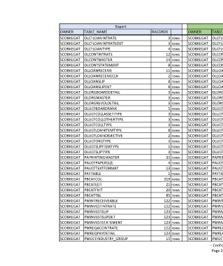 OWNER TABLE_NAME RACORDS OWNER TABLE_NAME RACORDS OWNER TABLE_NAME RACORDS