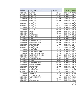 OWNER TABLE_NAME RACORDS OWNER TABLE_NAME RACORDS OWNER TABLE_NAME RACORDS