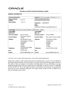 Support Service 6110107 Oracle Contact Information: