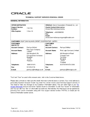 providing Your current information along with Your support service number 7767703, to Oracle per the