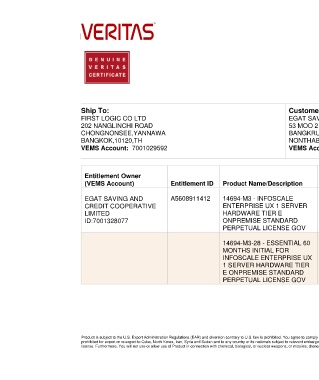 Product is subject to the U.S. Export Administration Regulations (EAR) and diversion contrary to U.S. law is prohibited. You agree to comply with all relevant laws, including the U.S. EAR and the laws of any country from which Product is re-exported. All Veritas Product is currently