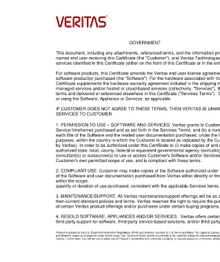 by Veritas). In order to be authorized under this Certificate to (i) make copies of and use the Software and/or Services and/or (ii) purchase Appliances, Customer must be an