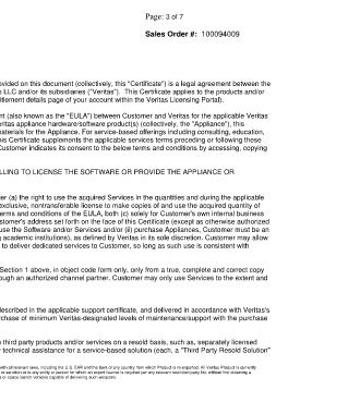 by Veritas). In order to be authorized under this Certificate to (i) make copies of and use the Software and/or Services and/or (ii) purchase Appliances, Customer must be an
