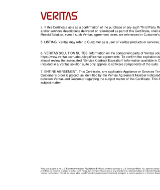 and/or services descriptions delivered or referenced as part of this Certificate, shall apply to such purchase. Veritas agreement terms shall not apply to the Third Party