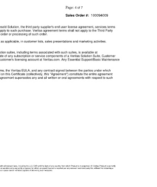 and/or services descriptions delivered or referenced as part of this Certificate, shall apply to such purchase. Veritas agreement terms shall not apply to the Third Party