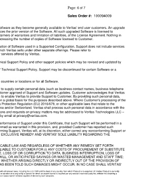 • Technical Support Policy: Support will be provided in accordance with Veritas' Technical Support Policy and other support policies which may be revised and updated by