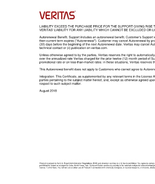 Product is subject to the U.S. Export Administration Regulations (EAR) and diversion contrary to U.S. law is prohibited. You agree to comply with all relevant laws, including the U.S. EAR and the laws of any country from which Product is re-exported. All Veritas Product is currently