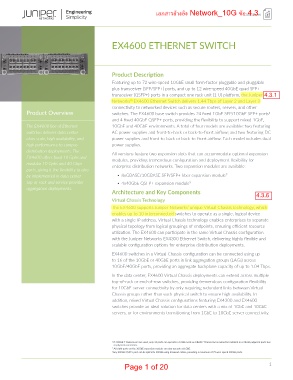 Product Overview switches. The EX4600 base switch provides 24 fixed 1GbE SFP/10GbE SFP+ ports