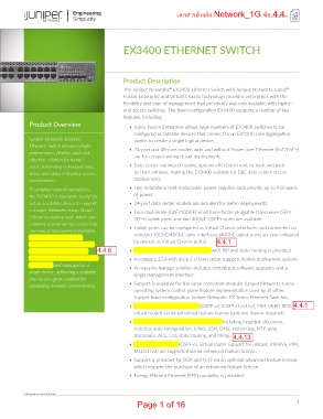 end access switches. The fixed-configuration EX3400 supports a number of key