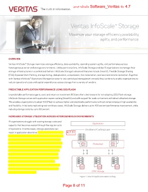 storage infrastructures in a centralized fashion. InfoScale Storage’s advanced features include SmartIO, Flexible Storage Sharing