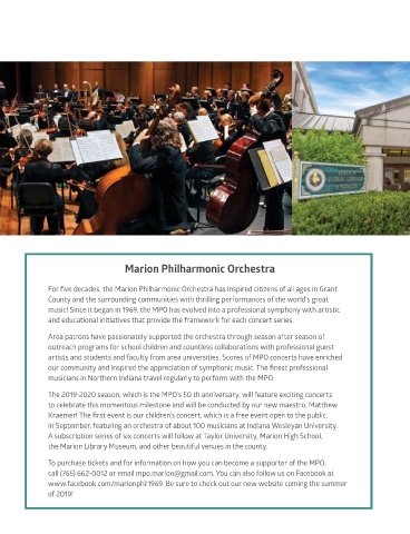 musicians in Northern Indiana travel regularly to perform with the MPO. theatrical arts to the Marion community for Theatre is a nonprofit 501c(3) organization that