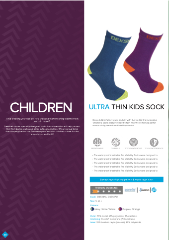 Keep children’s feet warm and dry with the worlds first innovative children’s socks that provide little feet with the combined perfor- mance of dry warmth and healthy comfort
