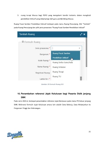 Ruang Pusat Sumber Pendidikan Inklusif terdapat pada menu Ruang Penunjang. Klik “Tambah”