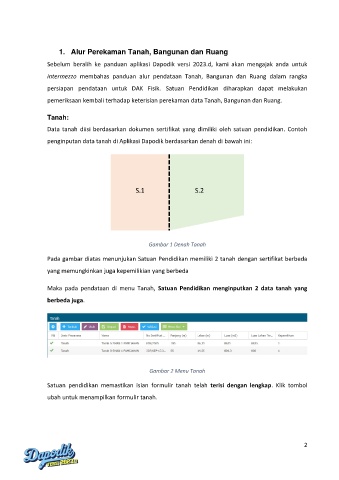 Maka pada pendataan di menu Tanah, Satuan Pendidikan menginputkan 2 data tanah yang