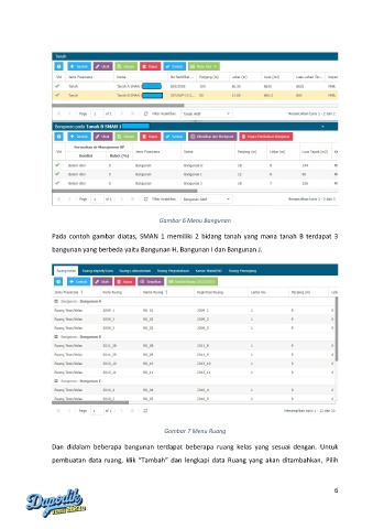 Pada contoh gambar diatas, SMAN 1 memiliki 2 bidang tanah yang mana tanah B terdapat 3