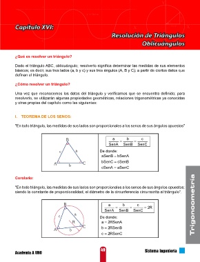 resolverlo, se utilizarán algunas propiedades geométricas, relaciones trigonométricas ya conocidas