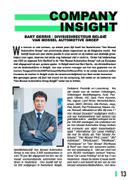 traject voor ogen, waarvan het einde nog helemaal niet in zicht is. Onder het leiderschap van CEO en eigenaar Eric Berkhof is de “Van Mossel Automotive Groep” ook op Europees vlak uitgegroeid tot een grotere speler. In België werd met Bart Gerris, als divisiedirecteur van de dealerbedrijven in België, een zeer ervaren manager aan het roer geplaatst van de merken Peugeot/Citroën/DS/Fiat/Jeep/Alfa/Abarth/Nissan/KIA. In de nabije toekomst zullen trouwens de merken in België onder de verantwoordelijkheid van Bart verder toenemen. Met genoegen gaven wij Bart het woord om de oorsprong, het heden en de toekomst van “Van Mossel Automotive Groep België” nader toe te lichten.