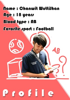 Name : Chanwit WuttiJhan Age : 18 years Blood type : AB Favorite sport : Football Profile