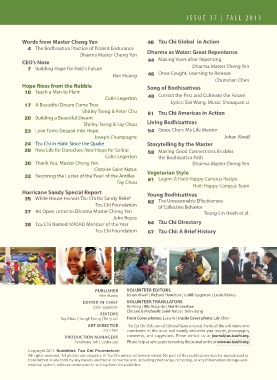 Art director The Tzu Chi USA Journal Editorial Team sincerely thanks all the volunteers who