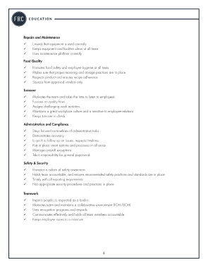      Motivates team and maintains a collaborative environment (FOH/BOH)
