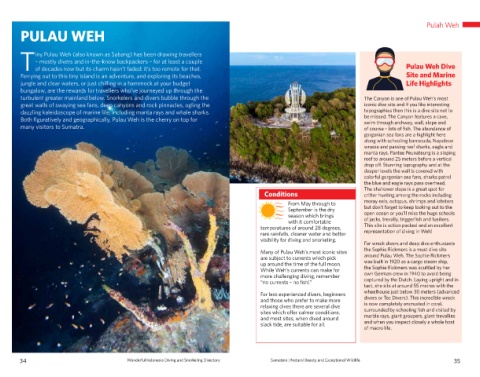 turbulent greater mainland below. Snorkelers and divers bubble through the The Canyon is one of Pulau Weh’s most