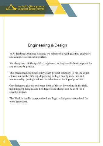 In Al-Rasheed Awnings Factory, we believe that well qualified engineers