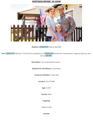 Headline: (YOUR CITY) Veteran Benefits