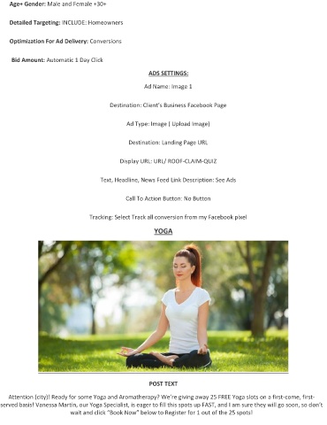 Destination: Client’s Business Facebook Page