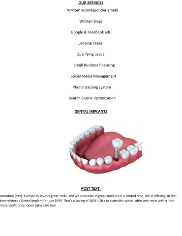 Attention {city}! Everybody loves a great smile, and we specialize in great smiles! For a limited time, we’re offering 10 first