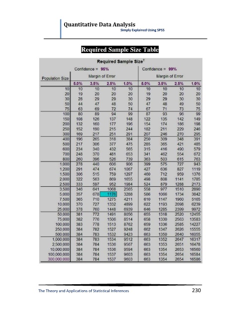 Quantitative Data Analysis Simply Explained Using SPSS Required Sample Size Table The Theory and Applications of Statistical Inferences 230