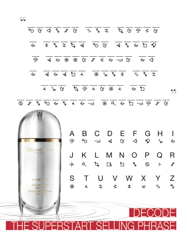 THE SUPERSTART SELLING PHRASE Elizabeth Arden SUPERSTART Skin Renewal Booster Booster Rénovateur de Peau ABCDEFGHI JKLMNOPQR STUVWXYZ DECODE THE SUPERSTART SELLING PHRASE