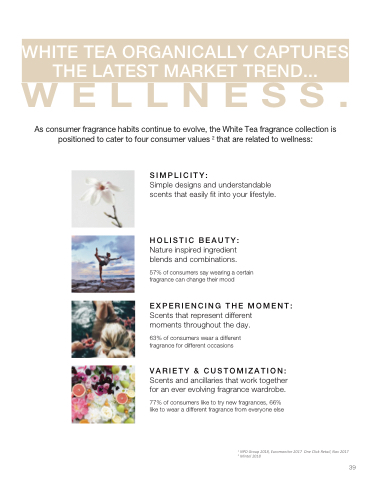As consumer fragrance habits continue to evolve, the White Tea fragrance collection is positioned to cater to four consumer values 2 that are related to wellness: