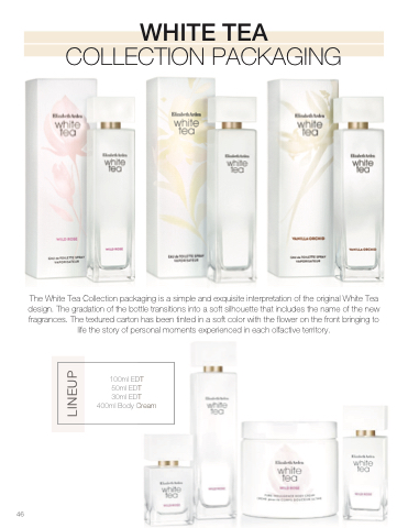 The White Tea Collection packaging is a simple and exquisite interpretation of the original White Tea design. The gradation of the bottle transitions into a soft silhouette that includes the name of the new fragrances. The textured carton has been tinted in a soft color with the flower on the front bringing to life the story of personal moments experienced in each olfactive territory.
