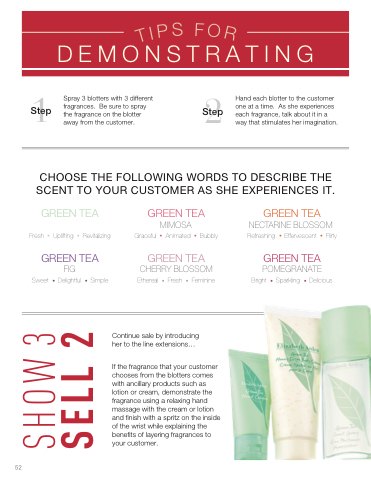 CHOOSE THE FOLLOWING WORDS TO DESCRIBE THE SCENT TO YOUR CUSTOMER AS SHE EXPERIENCES IT.