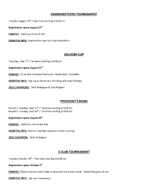ESSENTIAL INFO:  Sign up as twosomes. Pro Shop will make Pairings