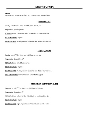 All mixed event sign ups can be found on the bulletin board in the golf shop.