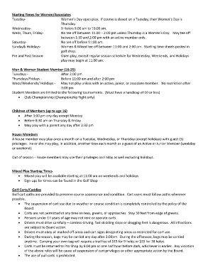 Sunday& Holidays- Women & Mixed tee off between 11:00 and 2:00 pm. Starting time sheets posted in